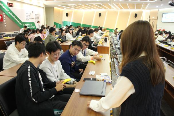 讲座共分为知识讲解和游戏互动两个环节。讲座伊始,主持人通过播放性教育相关视频介绍同伴讲座的背景和意义。红十字会主讲人科学全面的为同学们讲授了性知识,并借助香蕉模型演示避孕套的使用。同学们认证聆听讲解,在知识竞赛环节,同学们积极抢答,明辨正误。最后,讲座在“你演我猜”和“花朵绽放”两个游戏中收尾。