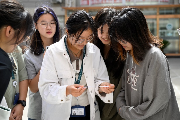 在“猜谜语”活动中,同学们通过表情组合、谐音猜词等形式竞猜灯谜。“蒙眼猜月饼”活动,需要大家在蒙眼的情况下说出月饼的口味。通过活动使同学们感受到传统文化与现代文化的融合之美,纷纷表示未来会继续探寻传承发展中华的新形式。