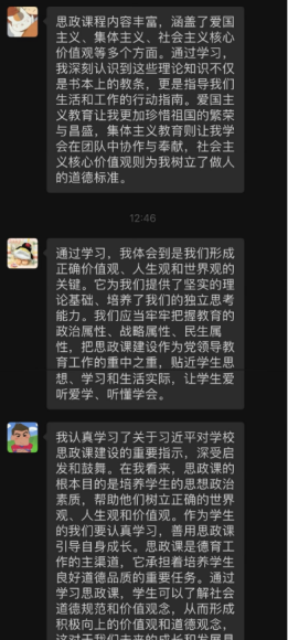 学习过程中,大家积极交流感想,深刻感受到习近平总书记对新一代青年的关心关爱,决心按照习近平总书记的指示精神和思政课程要求,发挥积极性、主动性和创造性,以更加奋发昂扬的精神面貌去迎接新时代的挑战。