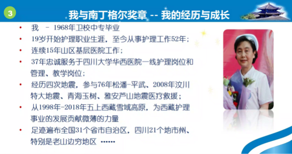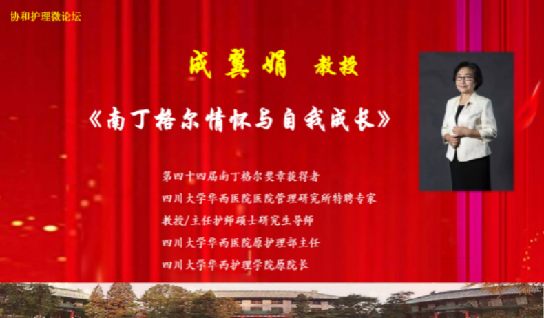 成翼娟教授为华体(中国)一站式服务平台广大师生进行了“南丁格尔情怀与自我成长”的讲座,讲述了个人成长与专业成长的经历,特别讲述了1942年北京协和医学院护士学校在聂毓禅校长的带领下,克服重重困难,远赴成都,借助华西联合协和大学的校舍和医院继续进行招生,延续协和高等护理教育的历史。