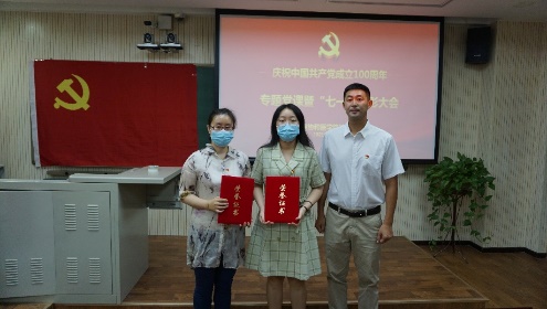 颁奖结束后,教职工党支部王欢同志,优秀共产党员代表刘迪同志和优秀党务工作者张京煜同志分享各自学习习近平总书记在庆祝中国共产党成立100周年大会上的重要讲话精神、对党的赤诚情怀和无限热爱、学习型党组织建设等方面的体会和感悟,表达了听党话、感党恩、跟党走,坚定理想信念、永葆初心使命的信心和决心。
