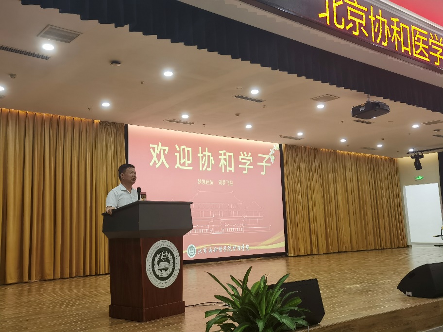 党委安道彩书记以《协和与护理文化》为主题介绍了百年来一代代协和人对“尊科学济人道”协和精神的践行与传承,帮助同学们了解协和护理的文化与历史,感悟南丁格尔精神在百年间的薪火相传。在感叹光阴荏苒、群星璀璨的同时,赋予新生协和人的责任与使命,播下“悲悯、专注、自省”的种子,作为协和人坚定为人类健康福祉不懈奋斗的初心使命。