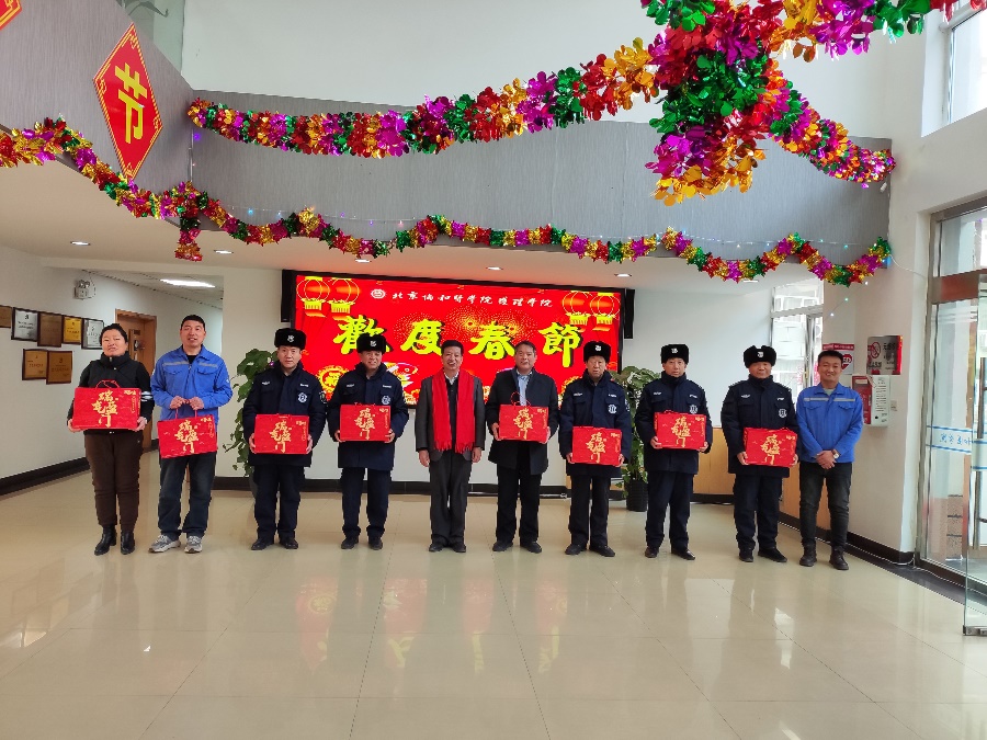 大年三十,安道彩书记代表学院领导慰问看望在学院坚守工作岗位的总值班、宿管老师、保安和物业等一线人员,为大家送去新春祝福和诚挚问候,感谢大家一年来为学院安全稳定和运行服务保障的付出与辛勤工作。希望大家在今后的工作中继续发扬爱岗敬业、无私奉献的精神,强化服务意识和安全理念,切实做好春节期间学院安全稳定和校园整洁,确保过一个欢乐祥和的新春佳节。
