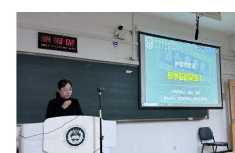 院校教师教学创新大赛一等奖获得者邹海欧教授从师资队伍、教学体系、教学资源、教学方法研究等方面分享《老年护理学》课程建设经验。
