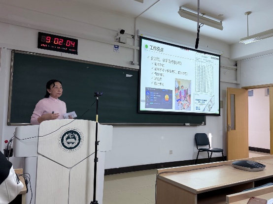 教学科研办公室主任叶丽娟从教学组织与管理、招生宣传与录取、课程建设、学生培养、教学质量、专业交叉与融合等方面对过去一年教学管理工作进行总结。