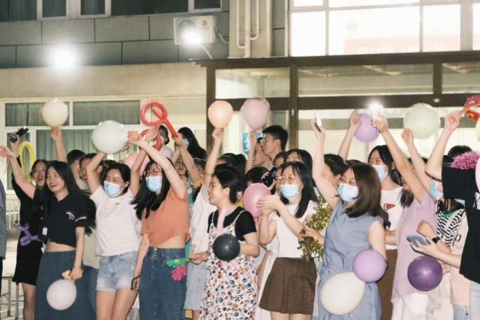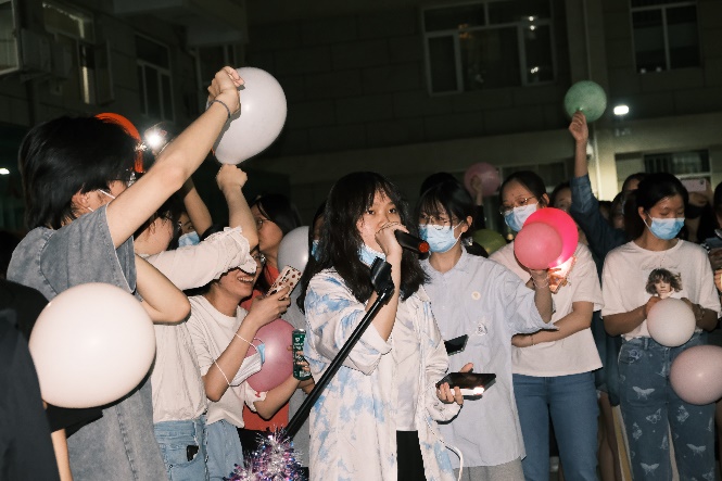 猜歌比赛结束后,文体部又特别推出了点歌环节,将现场气氛再一次推向新的高潮。“时光的河入海流,终于我们分头走……”研究生们唱响《凤凰花开的路口》,为即将毕业的师兄师姐送上美好祝愿;“从前从前,有个人爱你很久……”“我知道你才是这世界上无与伦比的美丽……”各路好友团为当天过生日的几位同学准备了惊喜,全场共同见证了青春时代最美好的友情与爱情。声浪阵阵,高潮迭起,跳动的音符接踵而至,青春的旋律如影随形。舞蹈社的同学们也纷纷在合唱中加入舞蹈,张扬别样风采,挥洒青春汗水。夏夜微风,挥舞的闪光灯仿佛点点星光,照亮每一张真诚笑颜。封校不封爱,此刻,便是星辰大海。