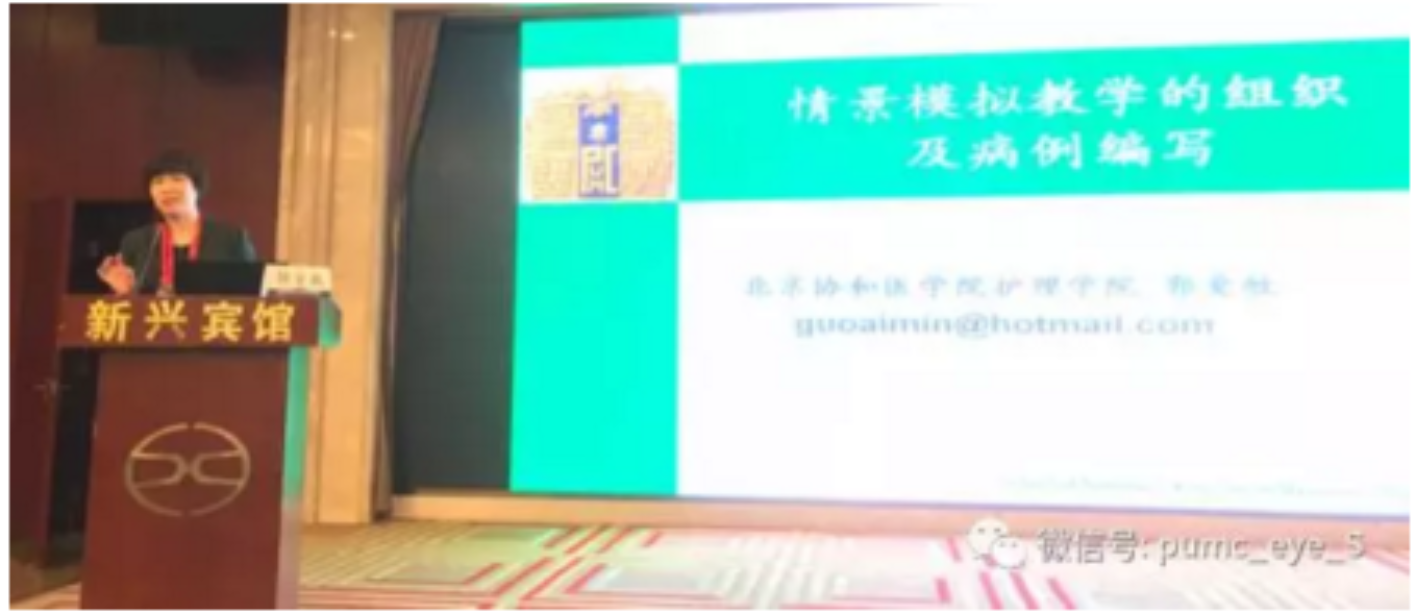 图为郭爱敏教授进行《情景模拟教学的组织及病例编写》讲授