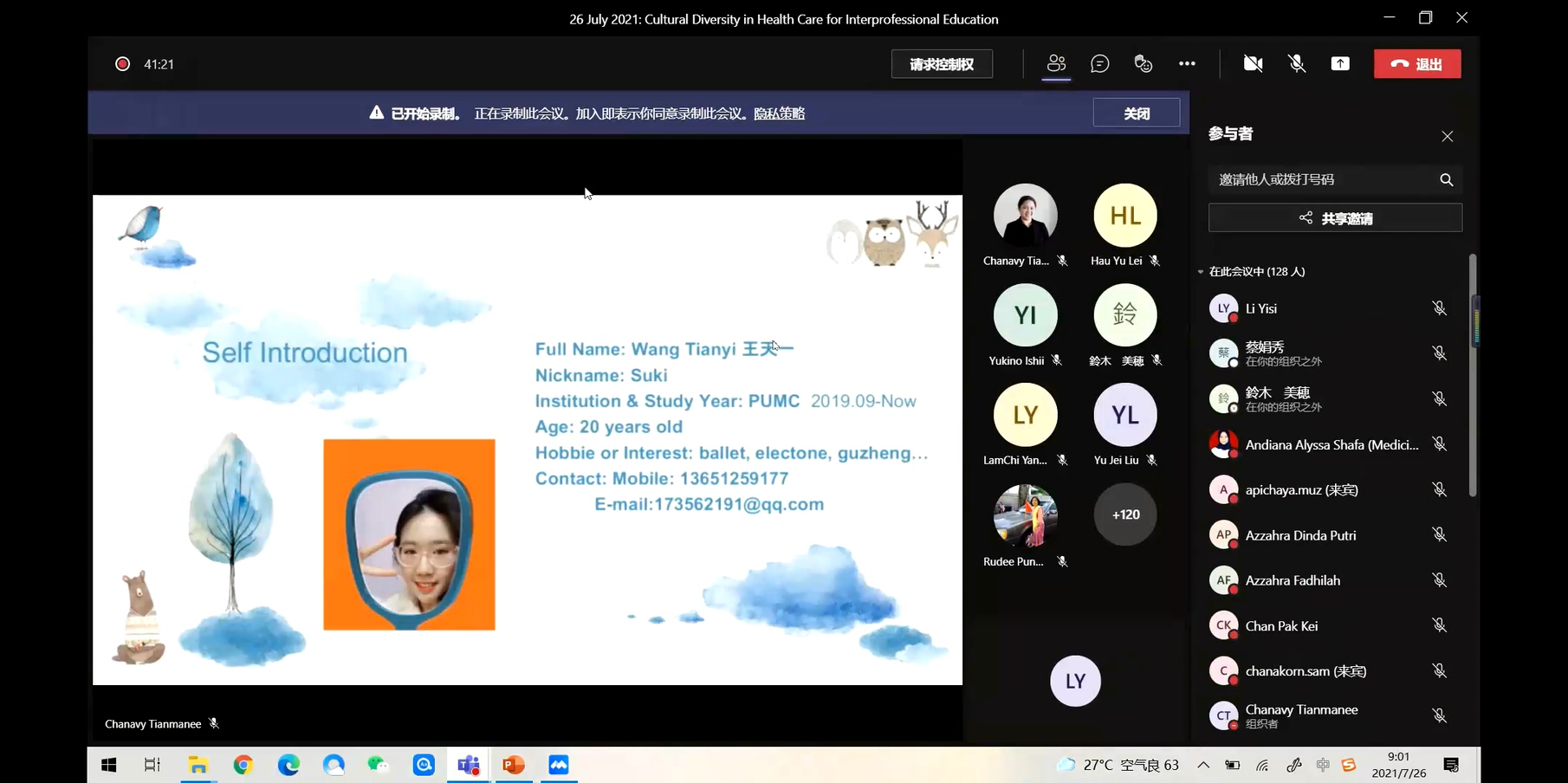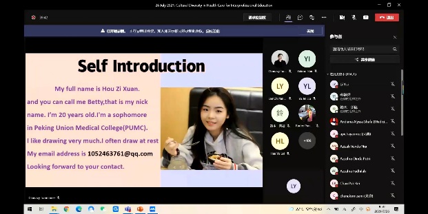 北京时间2021年9月10日晚20:00-22:00,受泰国清迈大学邀请,我校师生(共44人,其中8名教师,36名19级本科生)参加了由清迈大学主办、美国德克萨斯大学健康科学中心圣安东尼奥分校协办的线上国际交流会议,本次会议主题为“Lessons Learned and Work Opportunities during the Covid-19 Pandemic”。