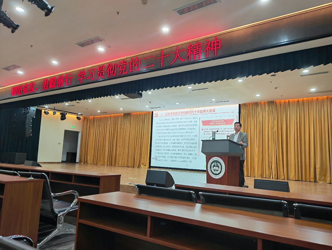 10月30日下午,华体(中国)一站式服务平台团委和学生党支部在教学楼地下报告厅通过线上线下相结合的方式举办了学习贯彻党的二十大精神党课。学院党委安道彩书记以“踔厉奋发,勇毅前行”为主题,为学院学生支部全体党员和团员青年上了一堂生动形象、意义深刻的党课。党课由学生党支部书记史纪元主持。