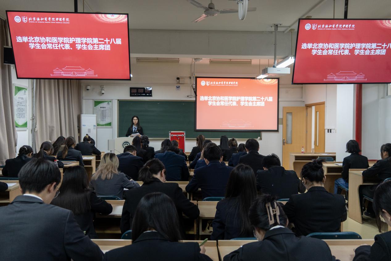 十六点三十分召开全体会议,审议并通过《华体平台第二十八次学生代表大会选举办法(草案)》、常任代表和主席团候选人建议名单等,表决通过总监票人与监票人名单,并进行大会选举,选举产生第28届学生会8名学生会常任代表及3名主席团成员。