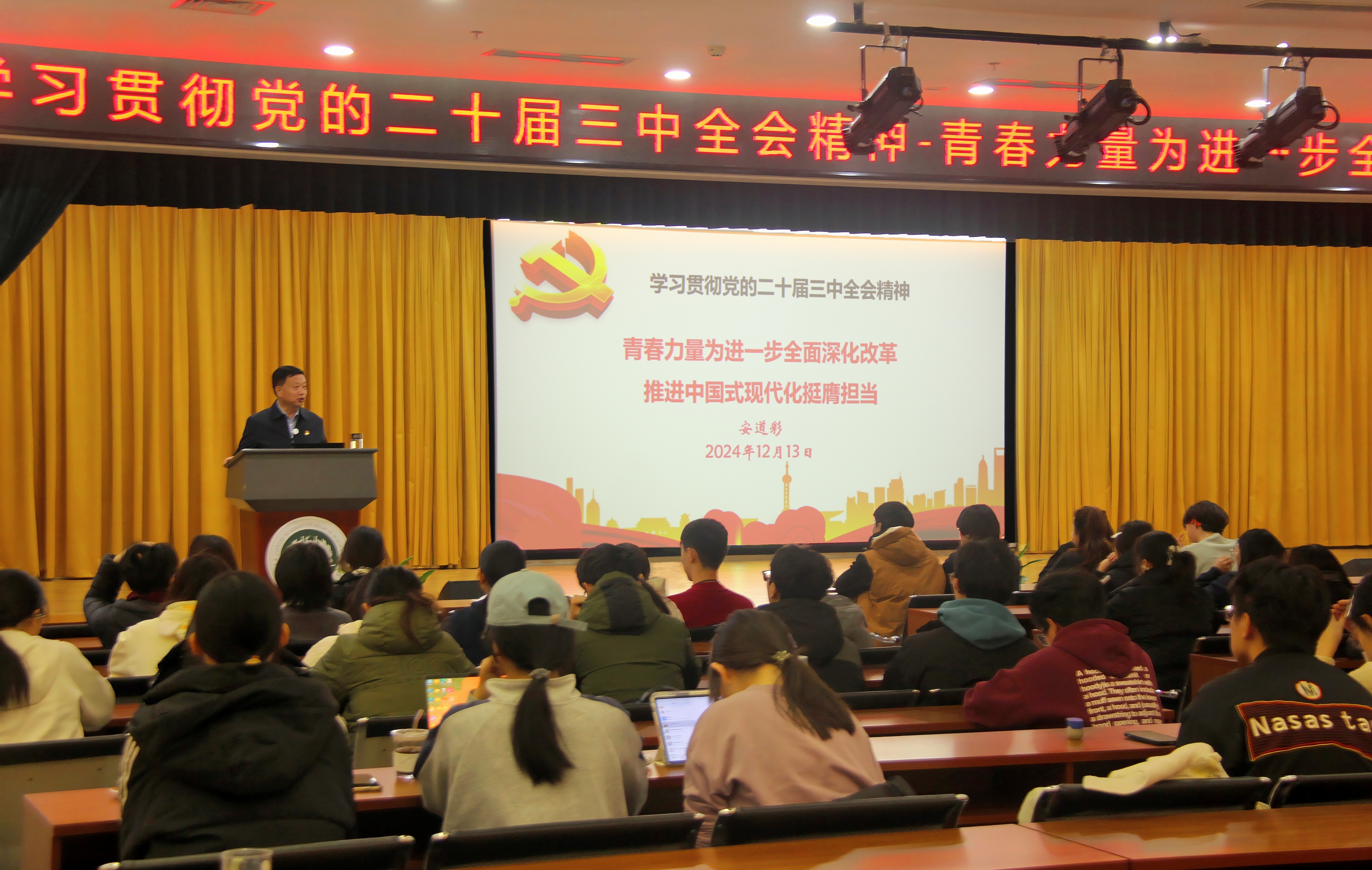 青春心向党,奋进新征程。12月13日中午,华体平台团委在八大处校区毓禅报告厅组织开展“青春力量为进一步全面深化改革、推进中国式现代化挺膺担当”主题团课,由学院党委书记安道彩讲授党的二十届三中全会精神,23本、24本全体团员及入团积极分子参加团课。