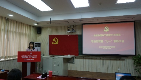 党委副书记安道彩同志代表学院党委向受到表彰的集体和个人表示热烈祝贺,号召各支部和广大党员向受到表彰的集体和个人学习,把认真学习贯彻习近平总书记在庆祝中国共产党成立100周年大会上的重要讲话作为首要政治任务,作为党史学习教育下一阶段的重点内容,继承发扬伟大建党精神,强化使命担当,树立远大理想,充分发挥支部战斗堡垒作用和党员先锋模范作用,内化于心、外化于行,牢记为党育人、为国育才使命,落实立德树人根本任务。在坚定理想信念、推动事业发展、勇于斗争、为民服务等方面当好先锋、作出表率。