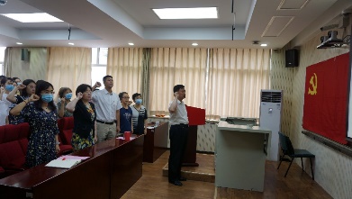 会议最后,在安道彩同志带领下,与会党员面向党旗重温入党誓词,在齐声高唱《没有共产党就没有新中国》的歌声中,会议圆满结束。
