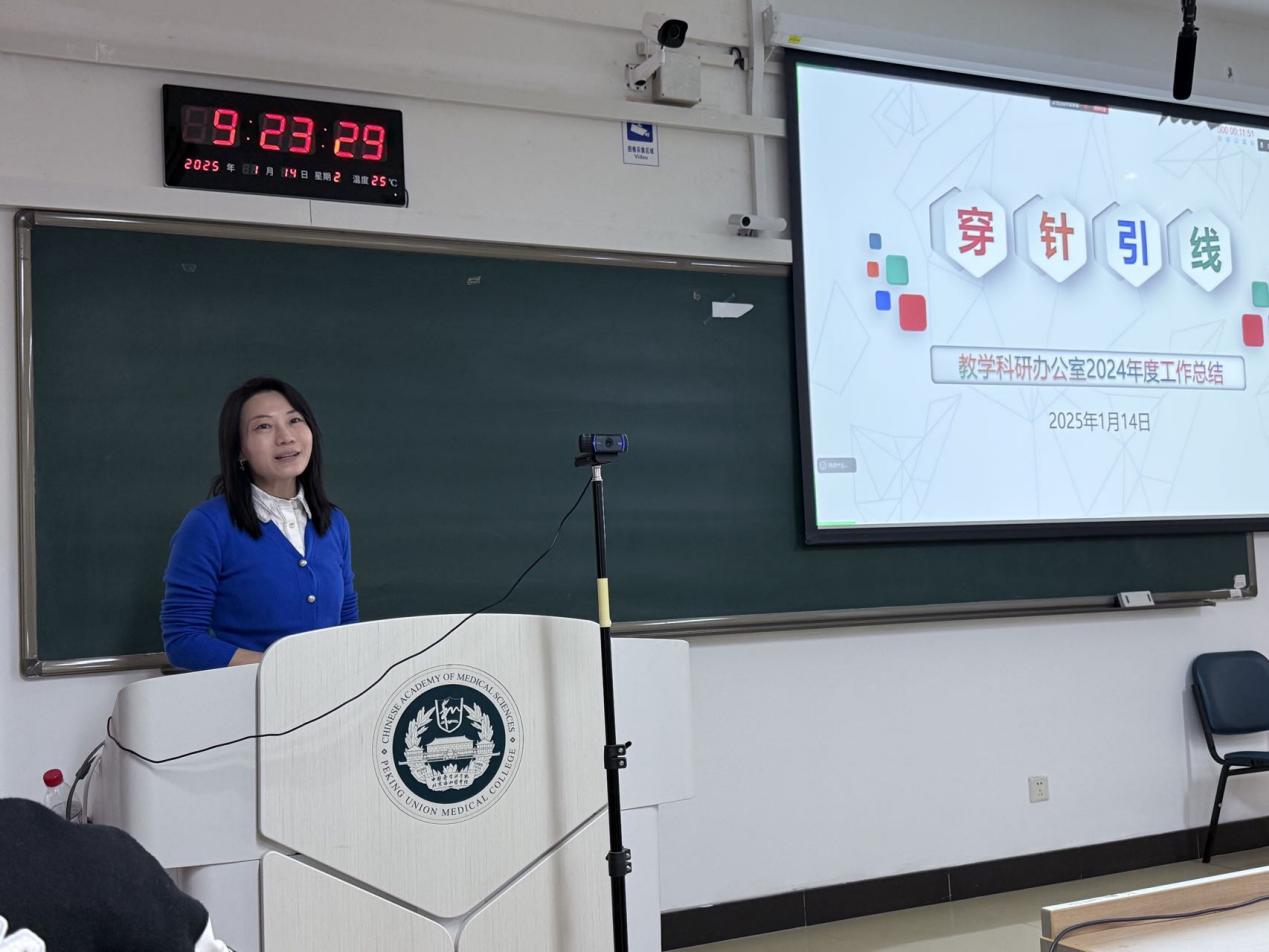 教学科研办公室主任叶丽娟从教学组织与管理、招生宣传与录取、课程建设、学生培养、教学质量、专业交叉与融合等方面对过去一年教学管理工作进行总结。
