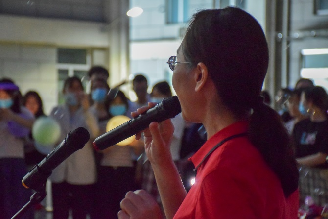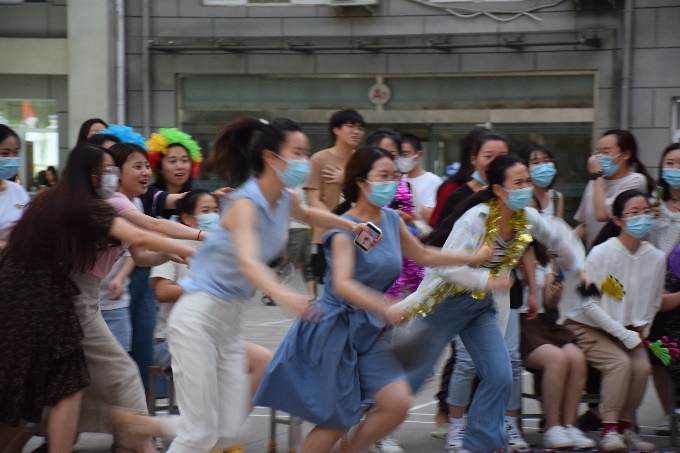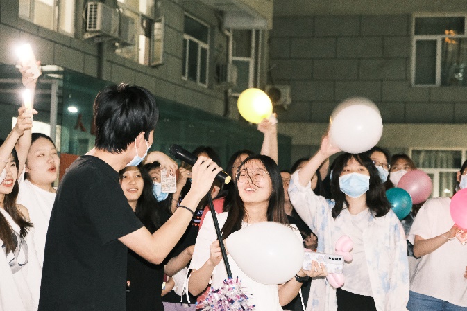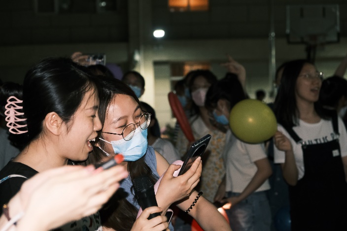 猜歌比赛结束后,文体部又特别推出了点歌环节,将现场气氛再一次推向新的高潮。“时光的河入海流,终于我们分头走……”研究生们唱响《凤凰花开的路口》,为即将毕业的师兄师姐送上美好祝愿;“从前从前,有个人爱你很久……”“我知道你才是这世界上无与伦比的美丽……”各路好友团为当天过生日的几位同学准备了惊喜,全场共同见证了青春时代最美好的友情与爱情。声浪阵阵,高潮迭起,跳动的音符接踵而至,青春的旋律如影随形。舞蹈社的同学们也纷纷在合唱中加入舞蹈,张扬别样风采,挥洒青春汗水。夏夜微风,挥舞的闪光灯仿佛点点星光,照亮每一张真诚笑颜。封校不封爱,此刻,便是星辰大海。