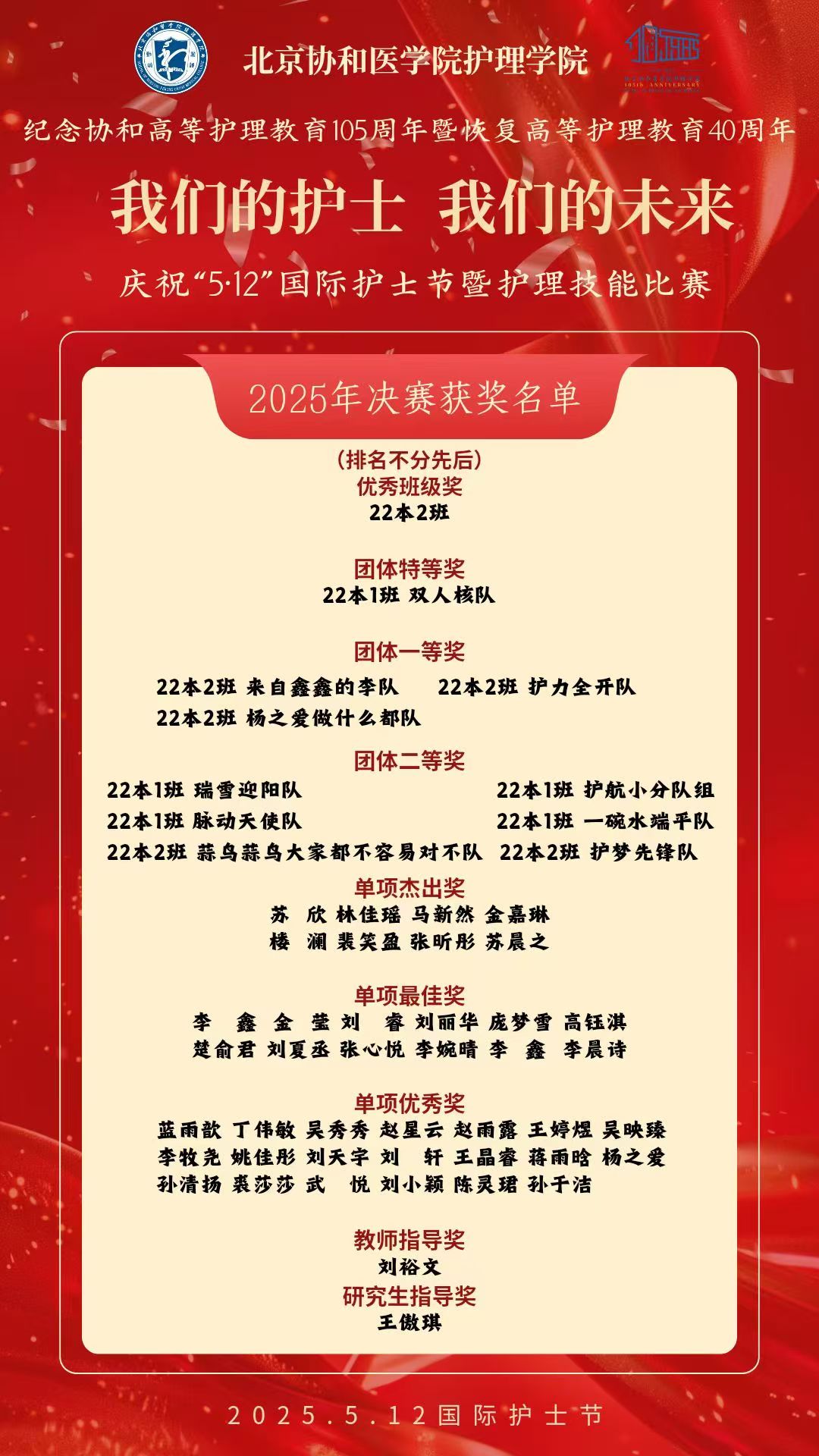护苑群芳展风采,匠心绝技焕韶光。此次比赛既是基护技能的试金石,亦是职业精神的练兵场。同学们日后将怀有对职业更高的敬意,以南丁格尔精神为灯塔,精进技艺、淬炼仁心,为守护生命健康砥砺前行,为卫生健康事业贡献协和力量!