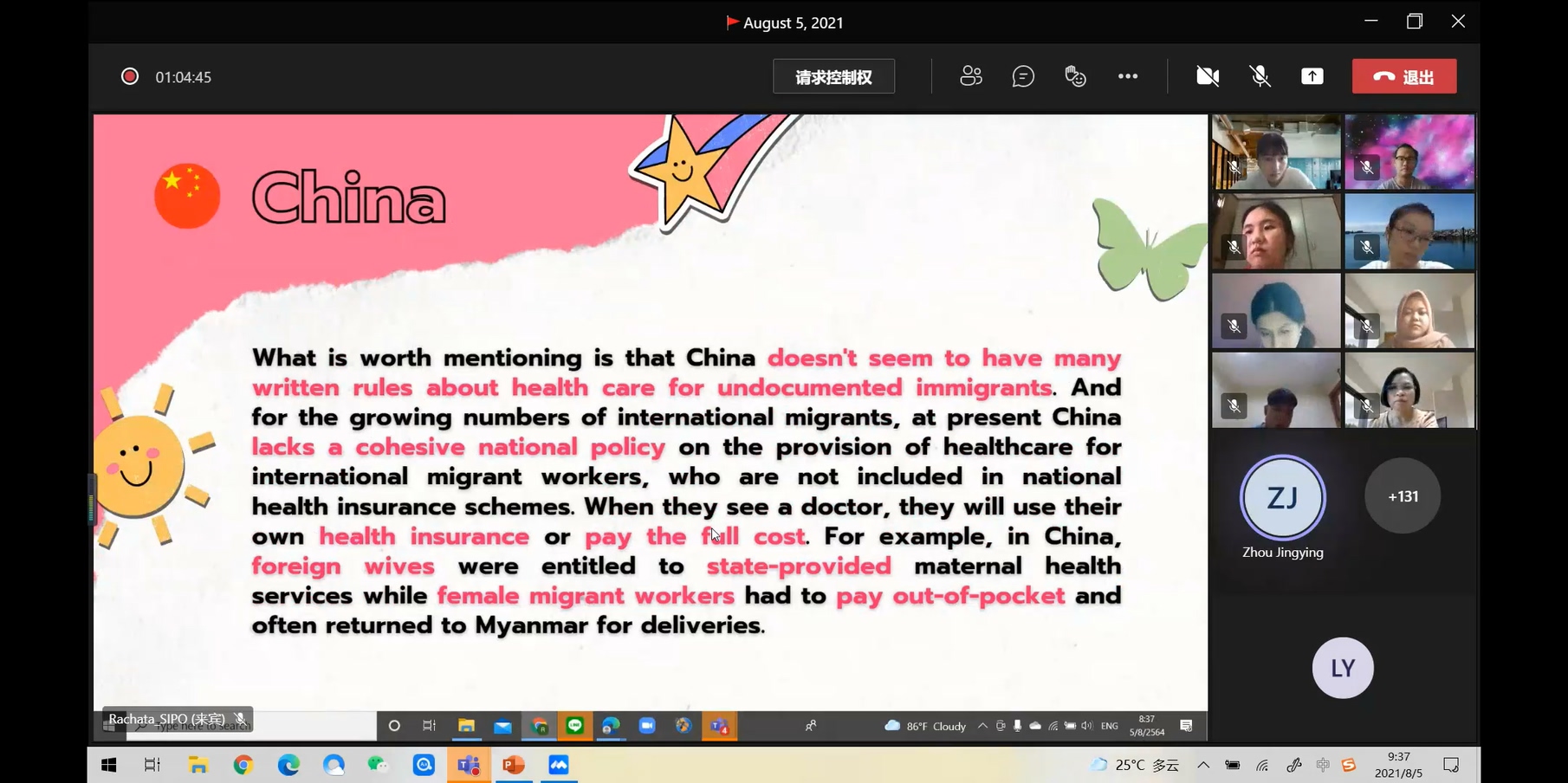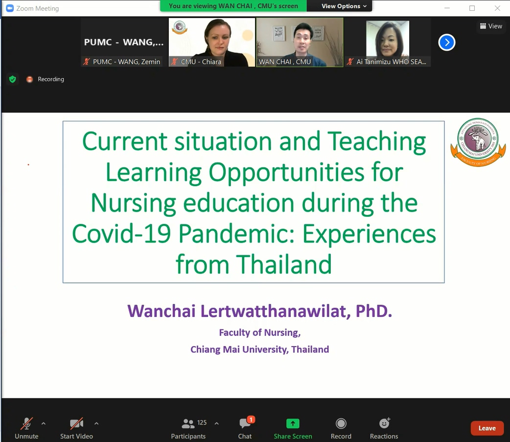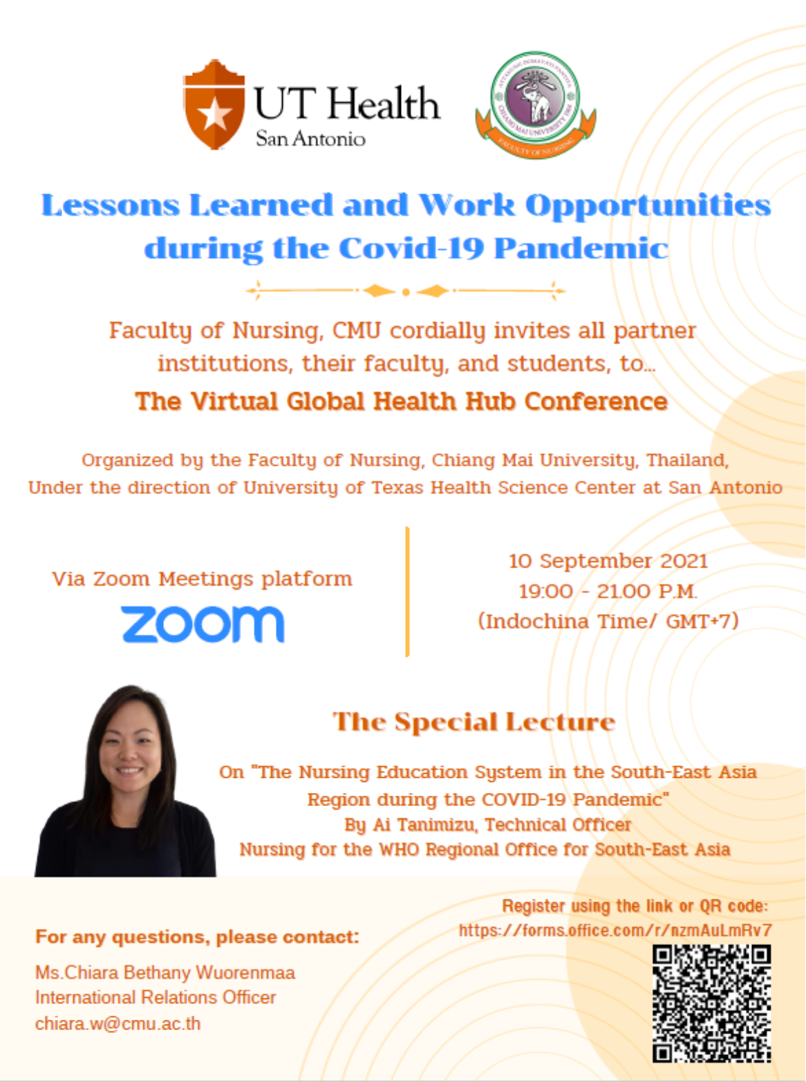 北京时间2021年9月10日晚20:00-22:00,受泰国清迈大学邀请,我校师生(共44人,其中8名教师,36名19级本科生)参加了由清迈大学主办、美国德克萨斯大学健康科学中心圣安东尼奥分校协办的线上国际交流会议,本次会议主题为“Lessons Learned and Work Opportunities during the Covid-19 Pandemic”。